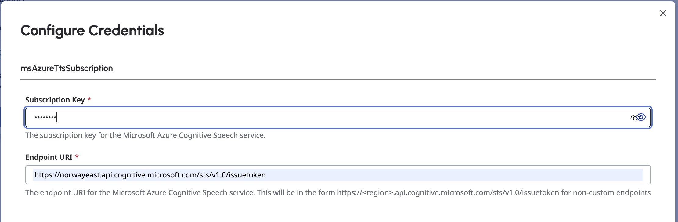 Try to set up this integration towards azure. Have tried both NorwayEast and Northeurope. I see in Voice service in Azure this is the link to endpoint. https://norwayeast.api.cognitive.microsoft.com/