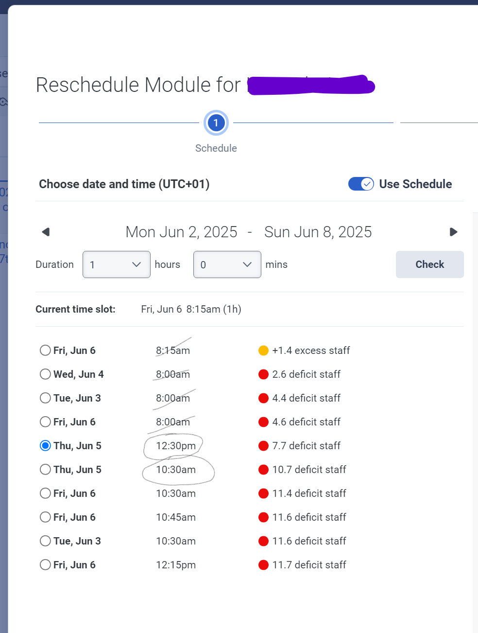 • 1.  module - schedule excess staff figure inaccuracy