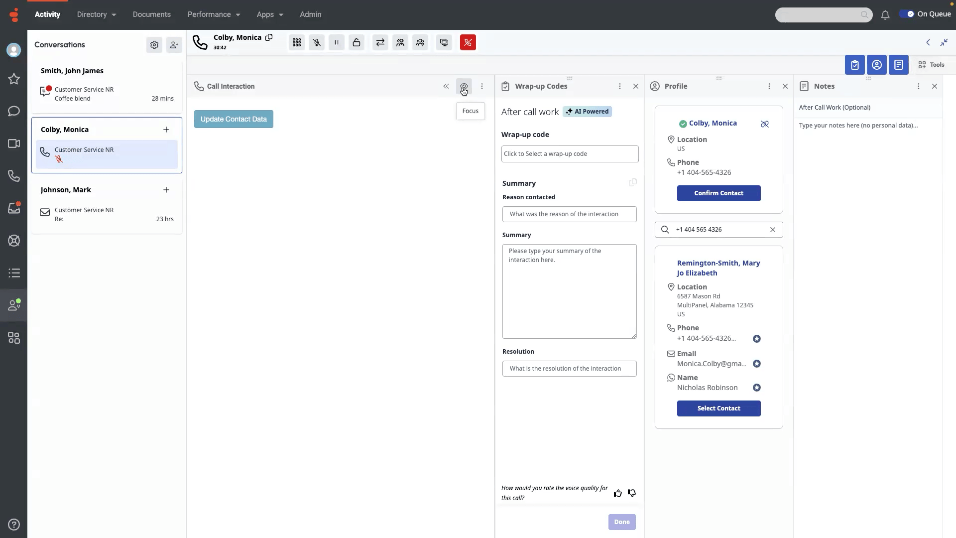 2. if they click focus mode and then the call ends, does the ACW/Wrapup screen automatically "end" focus mode and show up, or does the agent needs to click the focus mode button to see the panels?