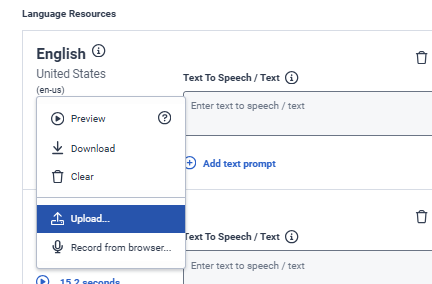 No seu fluxo do Architect, em vez de inserir o arquivo de áudio diretamente na ação "Play Audio", você pode referenciar um prompt personalizado.