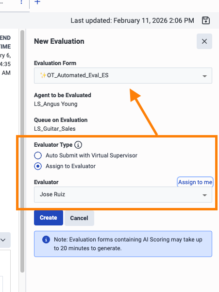 - Make sure you select an Agent Auto-Evaluation form type
