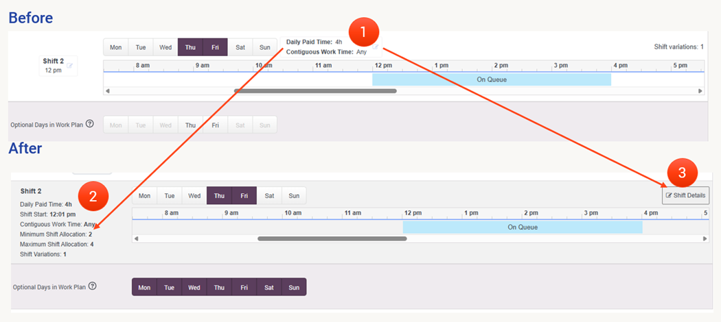 Work Plan Shift Details Changes
