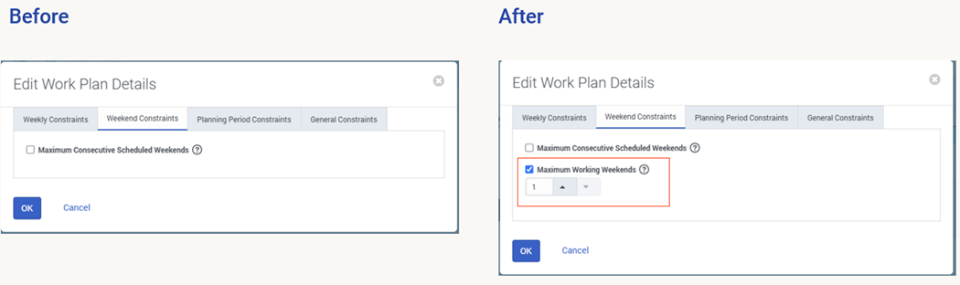 When selected, "Maximum Working Weekends" will cap the total number of times an employee is expected to work weekends during the Planning Period.
