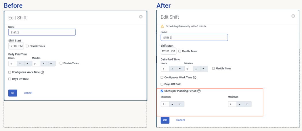 When selected, "Shifts per Planning period" will enable you to control how many times the selected shift can be scheduled for the employee to work during the Planning Period.
