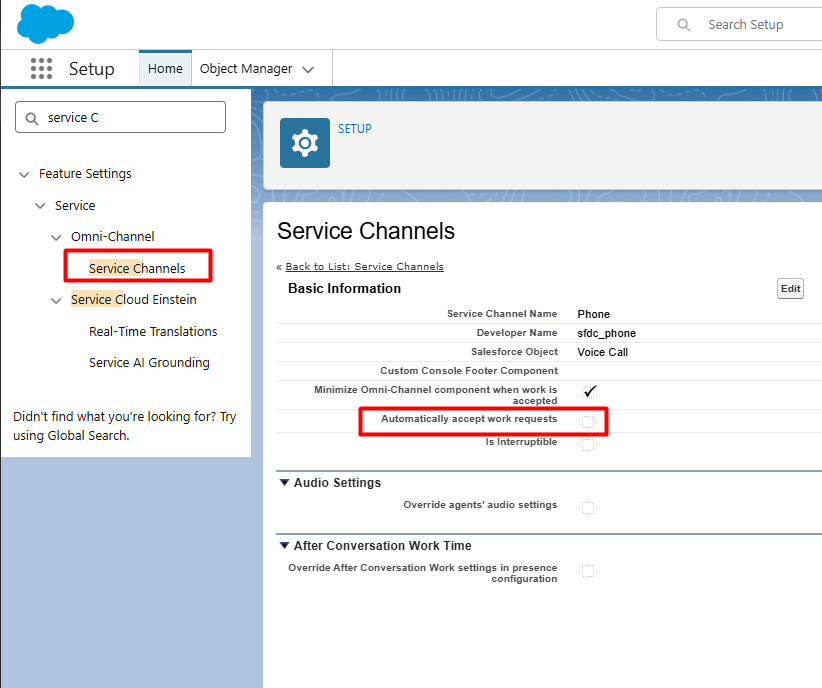 Hi! According to the official Genesys documentation, instead of using the Genesys Cloud auto-answer feature, you should use the "Automatically accept work requests" option provided by Salesforce. This setting is configured in the Presence Configurations within Salesforce.