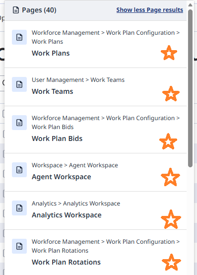 Then if you say clicked the star, you could get a drop down of all the items. Each page item has a star which is also clickable if you want to remove or add a favourite.