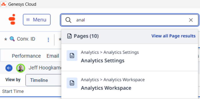 The updated search box is very handy to find and get to the relevant admin and the Analytics Workspace.