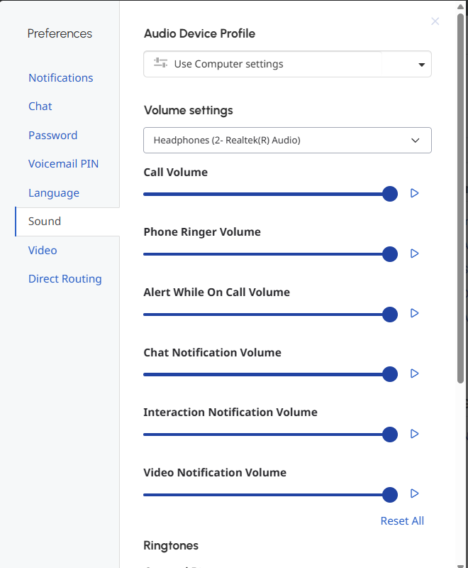 Hey all... I have one agent who IS able to hear a ringtone alerting about an INTERNAL call to their extension, but when there is a call from an external number (cell calling into a TFN), they are NOT able to hear a ringtone alerting about the call. They get the pop-up notification in both cases, but no ringtone on the external call-in.