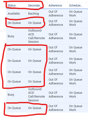 Off_queue looks to be a valid routing status while the agent is On Queue. We've not been able to reproduce what it takes to push an agent into this status - We've tried disassociating the station, deactivating all assigned queues, closing the WebRTC window, etc. These agents show as On Queue & Idle in Genesys itself, and don't look any different than anyone else. Does anyone have insight what may be occurring to get the On Queue-OFF_QUEUE status?