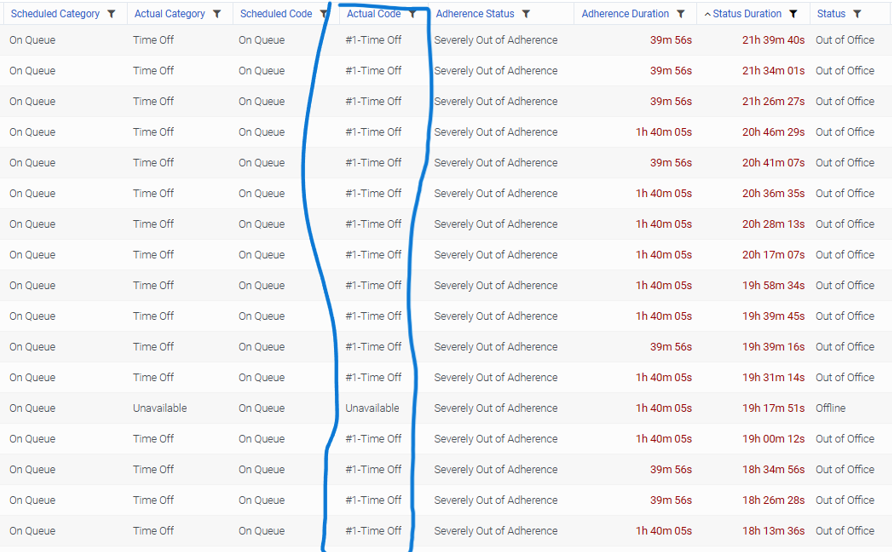 Not sure if you are experiencing some something similar to what we saw last week. We had about 30 agents from the same location but different BU/MU that we showing out of adherence. Real Time Adherence showed all them out of adherence in Out of Office / Time Off.  In Workspaces - Agent Status they many were On Queue, some in other statuses but none were reflected correctly in RTA. However, historical adherence did not show them out of adherence.