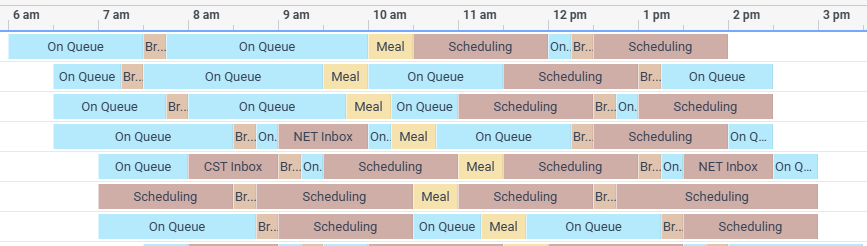 What I'd like to know is how can we better plan these shifts so that we don't need to manually adjust all these 15min on-queue blocks. The easy way would just be to give everyone their own individual workplans, but that kinda defeats the purpose of letting Genesys do it's magic.