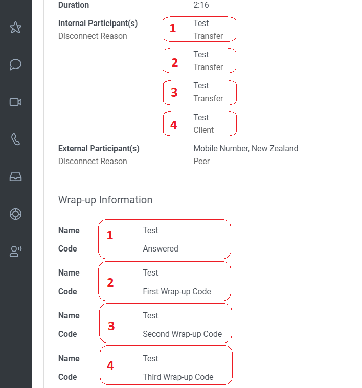 When a call is transferered from an agent in Queue A to an agent in Queue B, and they both select a wrap-up code for their leg of the call, how is that order shown when looking at reports/views of the interaction? Is the initial agent's wrap up code shown first, ie WRAP1, WRAP2 or does it take whichever agent selected theirs first?