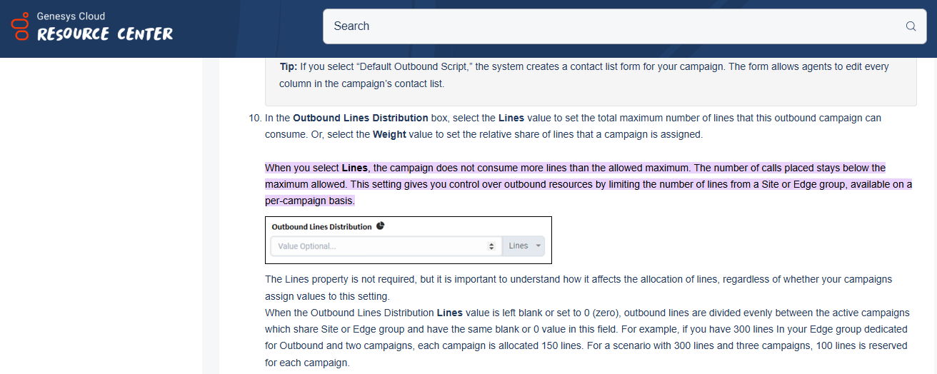 I understood that it can dial not more than "10" contacts at the same time. As this is what the Genesys Resource page outlines (snippet below).