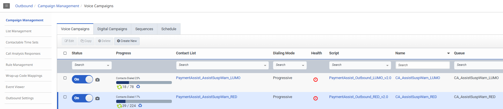 Performance   ->   Outbound Campaigns   - >  click the campaign thats running
