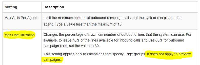 Does Max Line Utilization not work when using Campaigns with Preview Dialing Mode?