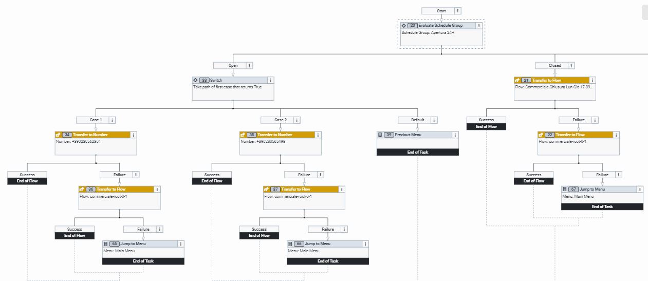- if an agent doesn't pick up the call in 40 seconds a wav audio will play saying "Thank you for contacting the commercial customer service....."