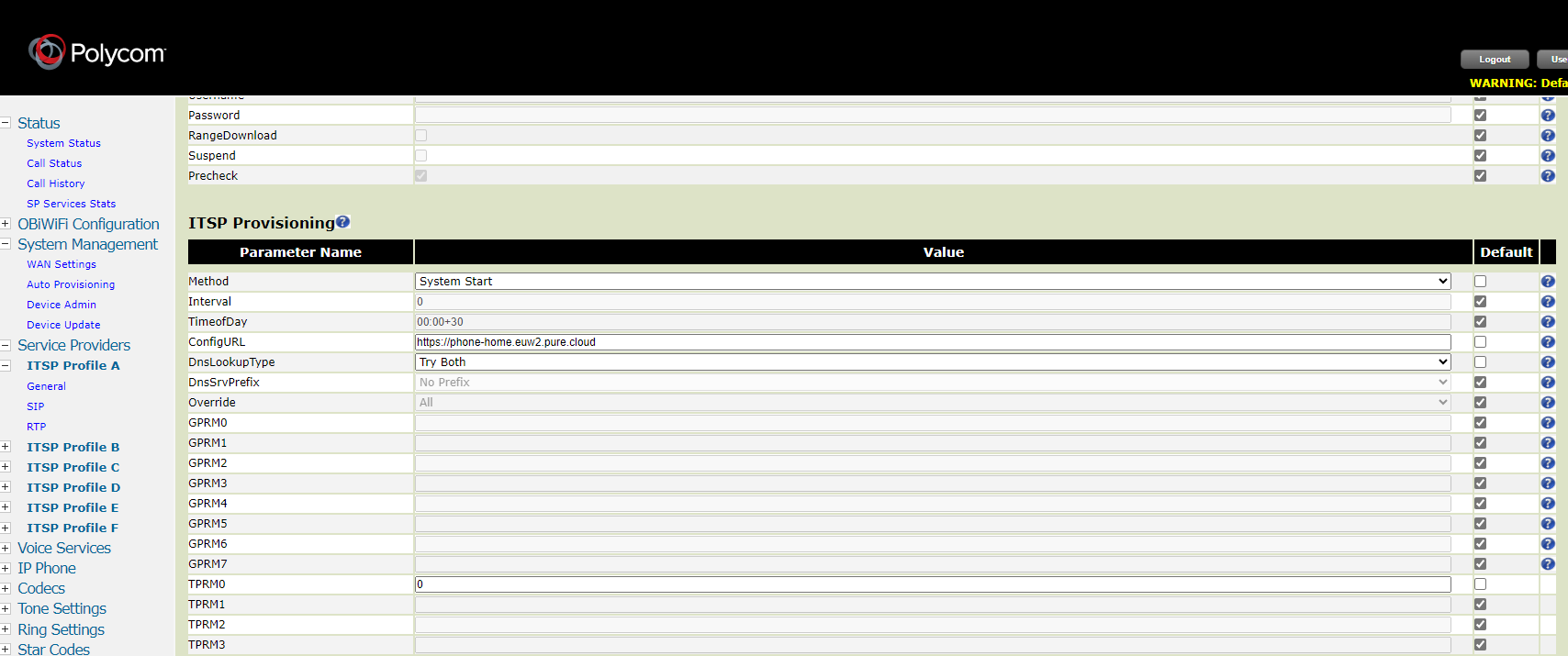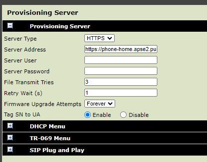 I've modified the Base Settings on PureCloud so that bit should (hopefully) be fine when the device actually tries to connect, but I can't see any attempts on my firewall trying to get to https://phone-home.euw2.pure.cloud (which works fine for the IP560s).