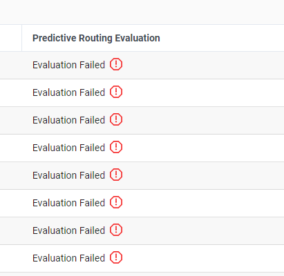 I just recently subscribed to the Predictive Routing . I am trying to evaluate the production queues but the queue evaluations are failing.