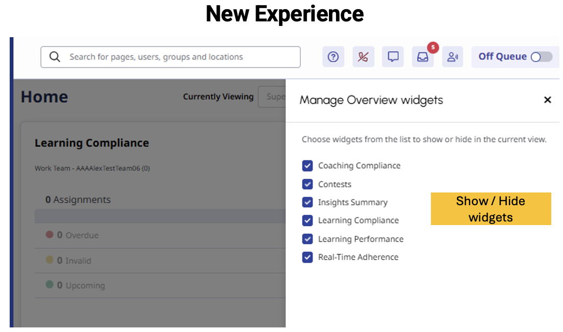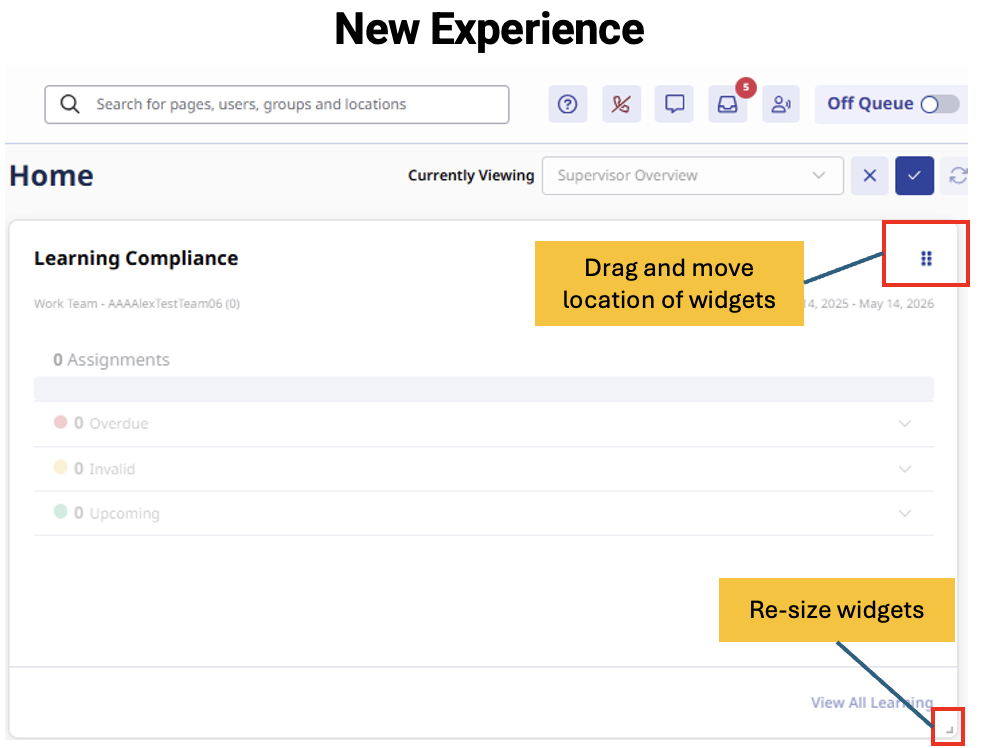 Aside from some new ability to re-arrange and resize widgets, this change is intended to be quite seamless. The relocation of the Agent Activity capabilities into the User Home experience lays the foundation for introducing more role- and context-aware widgets in the future.