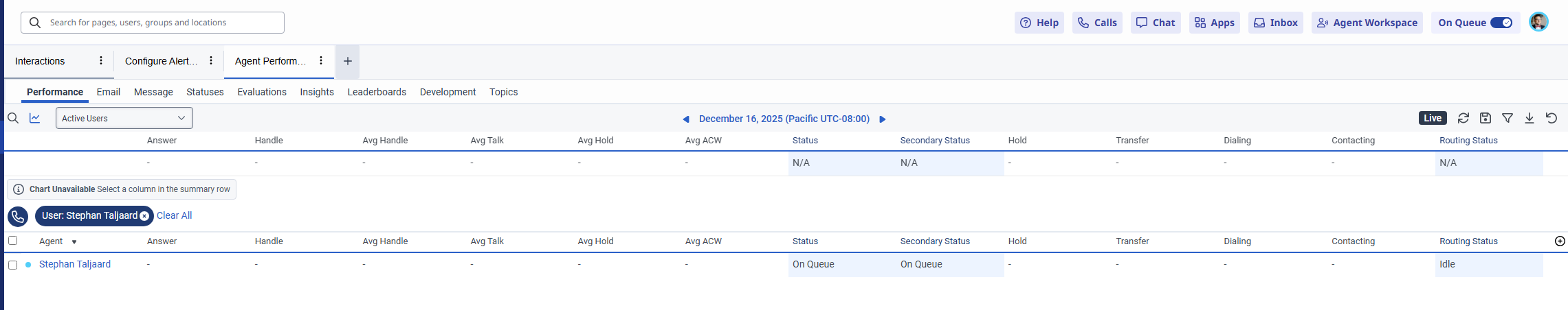 Thanks for the comment. Yes, the details page seems to show the agent "on queue," but it doesn't show them in "idle at this time. This is the only user, and this is the first time I've seen it happen. I wanted to find out why, so we can make sure it doesn't happen again.