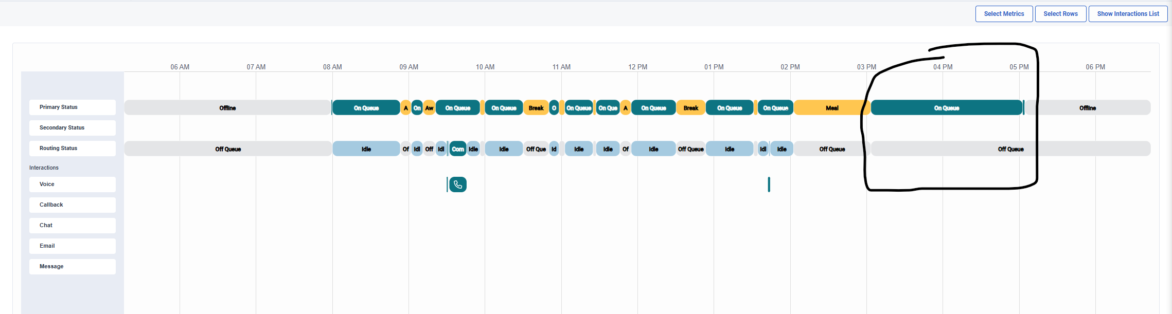 Can someone explain how the agent's status could be "on queue" but the routing status is "off queue" at the same time? Does this indicate they didn't have a phone connected or something?
