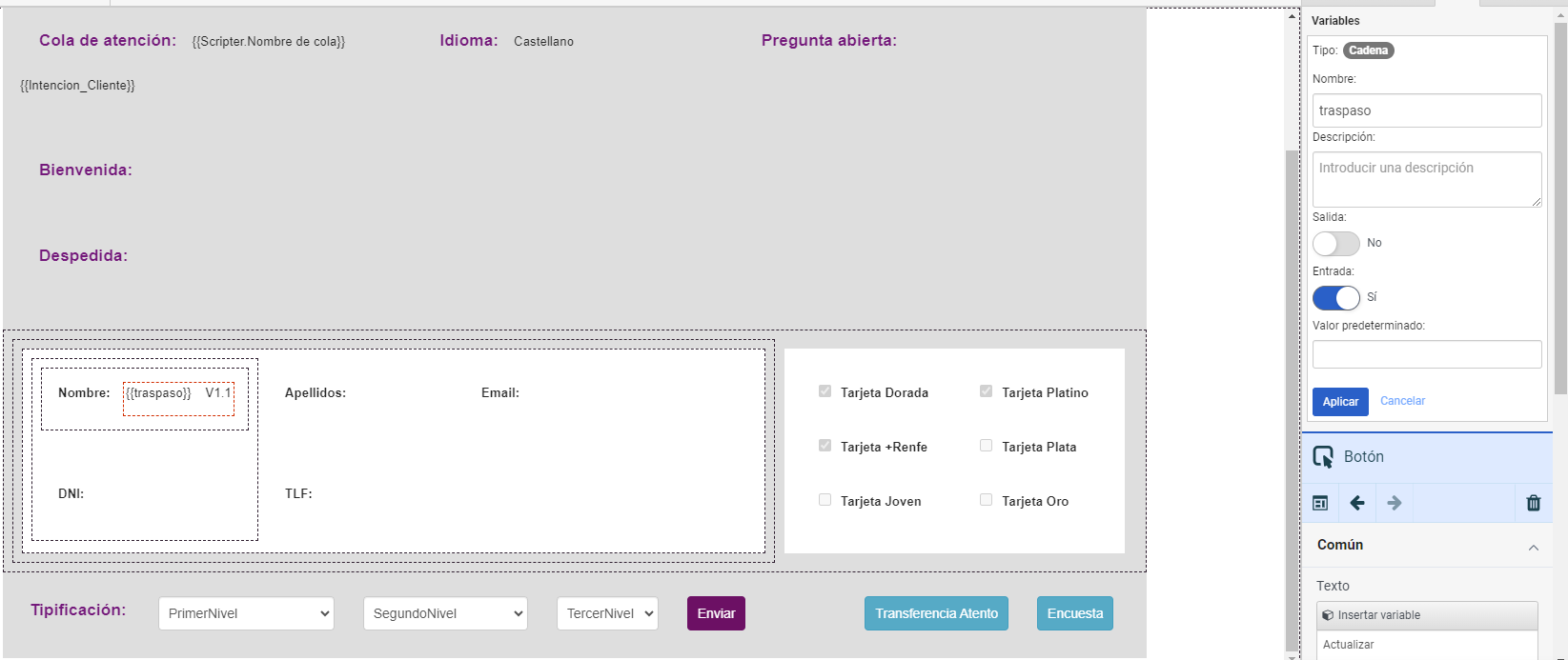 I missed the variable set up in your earlier post. The variable in the Script should be an input variable. This will allow it to pick up the input from the Call Flow.