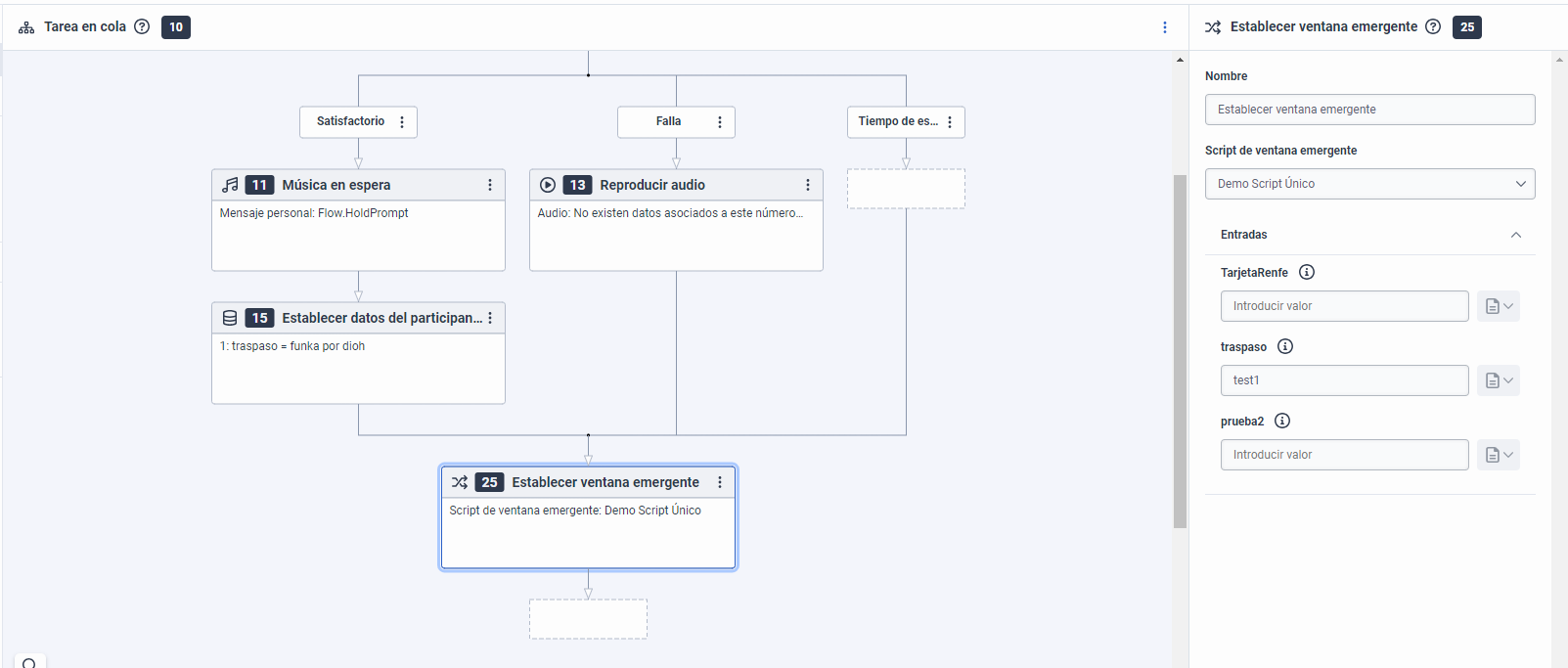 It looks like everything is fine in the script variable wise. It also looks like you are setting the screen pop in the in queue flow, based on your screen shot, if the caller does not wait in the queue until the step to set the screen pop is reached, it won't pass along that value to the scrip. Is this script also the default script for the queue or are you setting the screen pop in the inbound flow as well, z-techTEST? If you don't make it through all the steps in the in queue flow before the call reaches the agent from the queue, the variable value will be the default value of "". Unless you wanted to pass information from the in-queue flow to the agent, the best place to set the value you want in the screen pop is from the inbound flow.