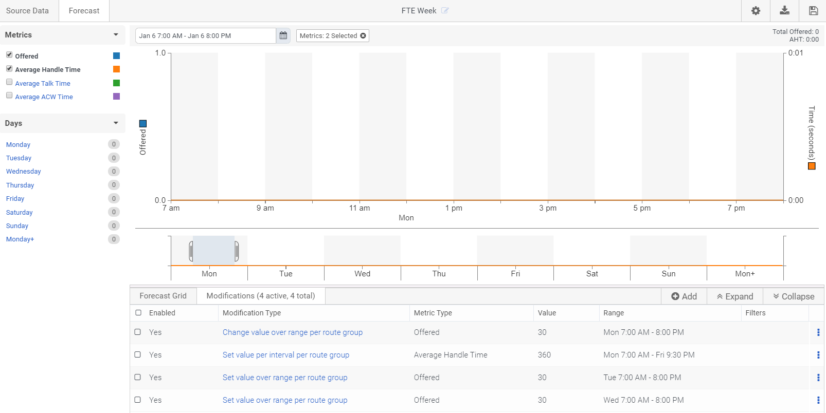 With these modifications, it doesn't appear to be adding anything in the forecast grid, please could you help to check if this is correct and if it's possible on PureCloud?