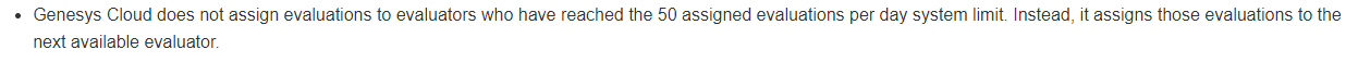 Policies are set to 3 evaluations a month per agent. Evaluators are receiving 0-7 each day. Mostly 0-3.