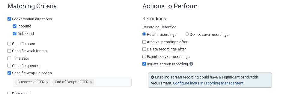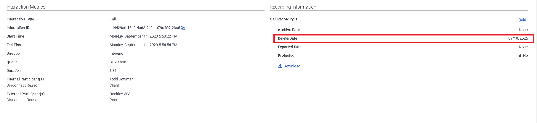 I configured in the Policy to Retain the recordings and keep it as long as we can.
