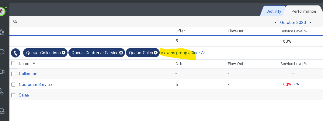 above are sample Queue's and i would like to group these into Queue - SalesQ and get total stats on all the sub Queue's combined