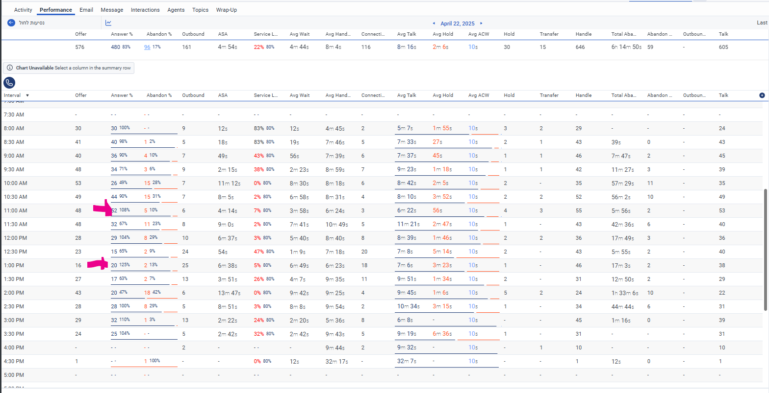- 40 interactions abandoned in the current interval - also, all were offered in the previous interval.