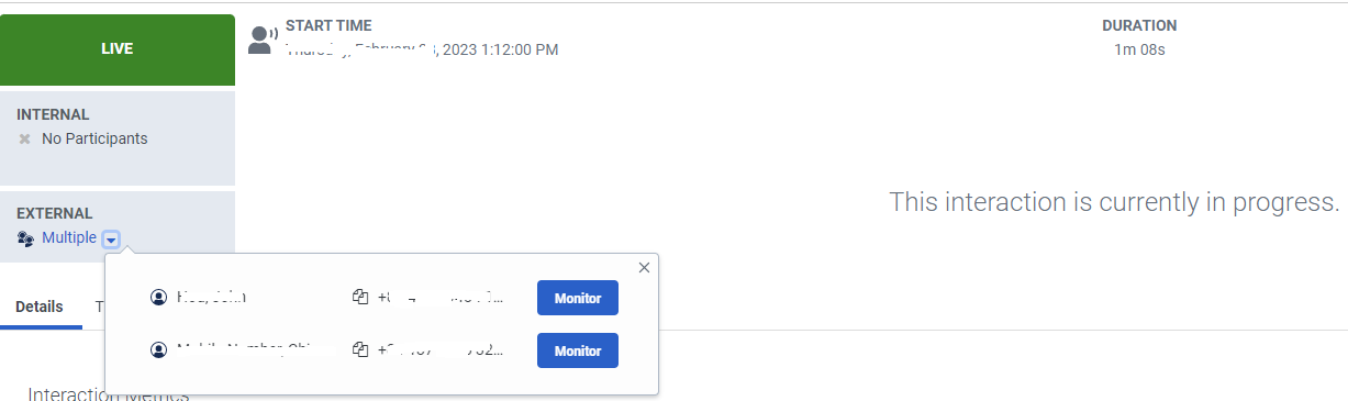 I noticed that when the call is active, even the RLT is enabled, the recording(Monitor) is still happening between the 2 external call parties.