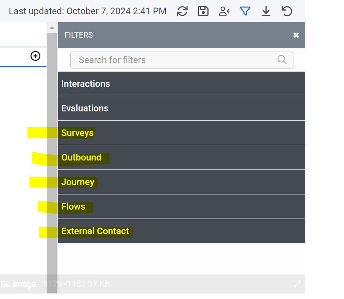• 4.  RE: Remove 'Surveys' and 'Outbound' and 'Journey' and 'Flows' and 'External Contact' from Filters