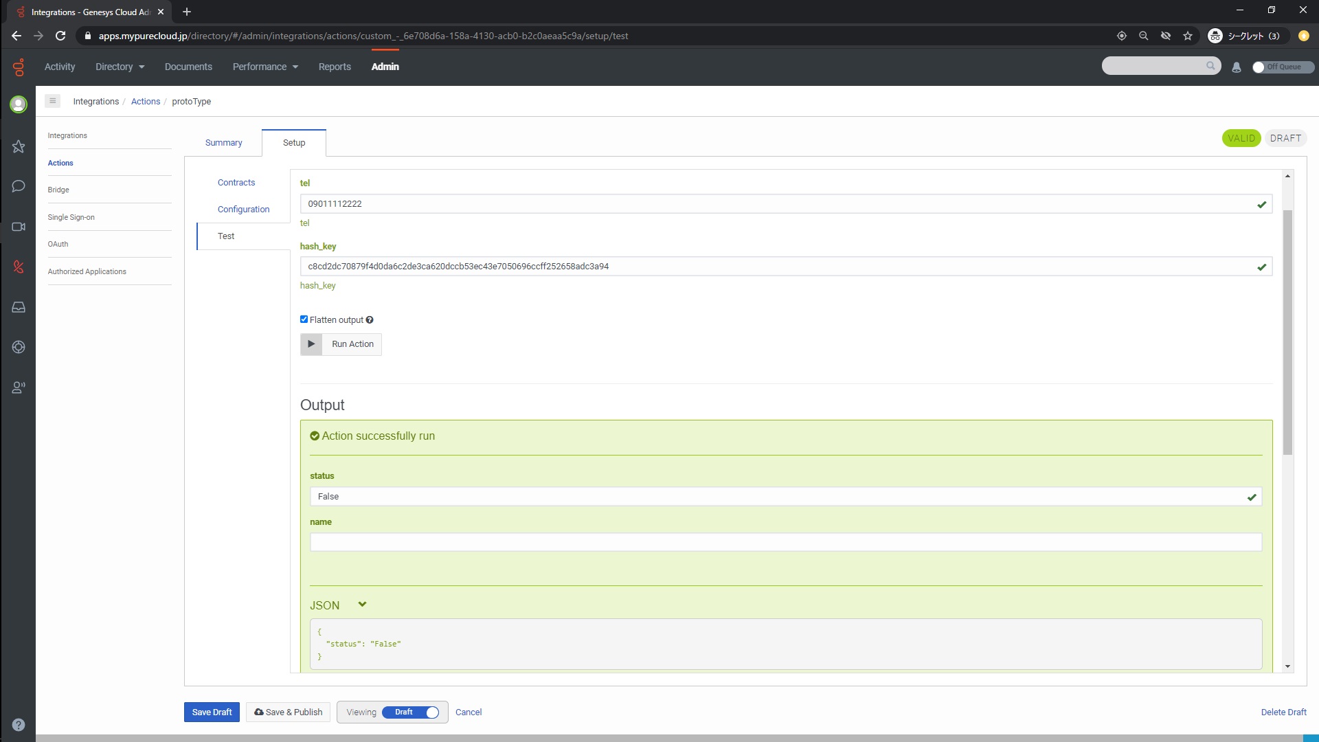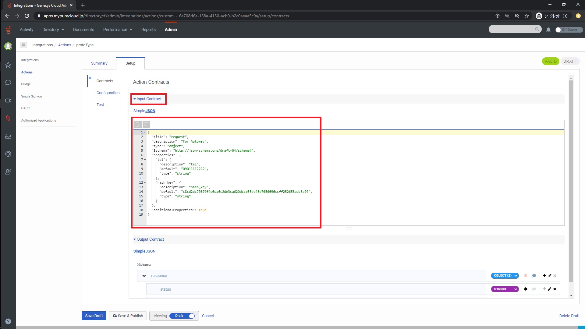 1. Define a Simple Input Contract with two input data in the schema: both strings, one for the tel and the other for the hash_key.