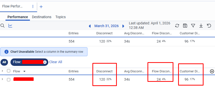 Notice above that it shows we had "96" disconnections groups with the reason "DISCONNECT", and 24 with the reason "FLOW_DISCONNECT".