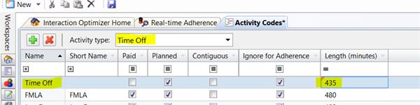 I am trying to make it so that time off is only paid as 7.25 hours so that when we go to code the schedule for the day, the time off (planned or unplanned) can be one code covering the entire day but only count as 7.25 hours towards the vacation allotment for the agents.