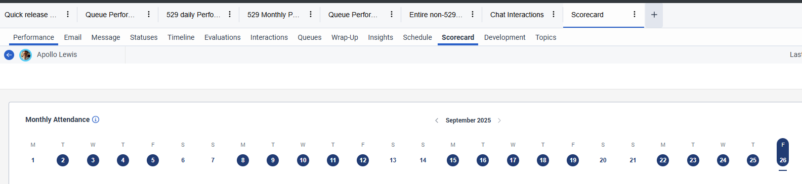 We have one agent that is not seeing his information populate in his scorecard, and we cannot figure out why. He has the same permissions as the other staff members. I've looked in the resources, but there's no troubleshooting. Can anyone help?