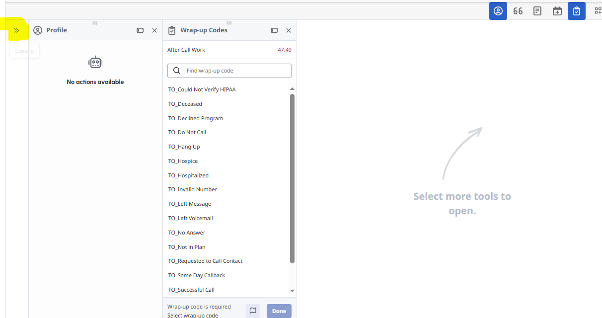 2. theres a Focus Mode button, this completely hides the Panels on the right until the call is ended where the Wrap codes will come up