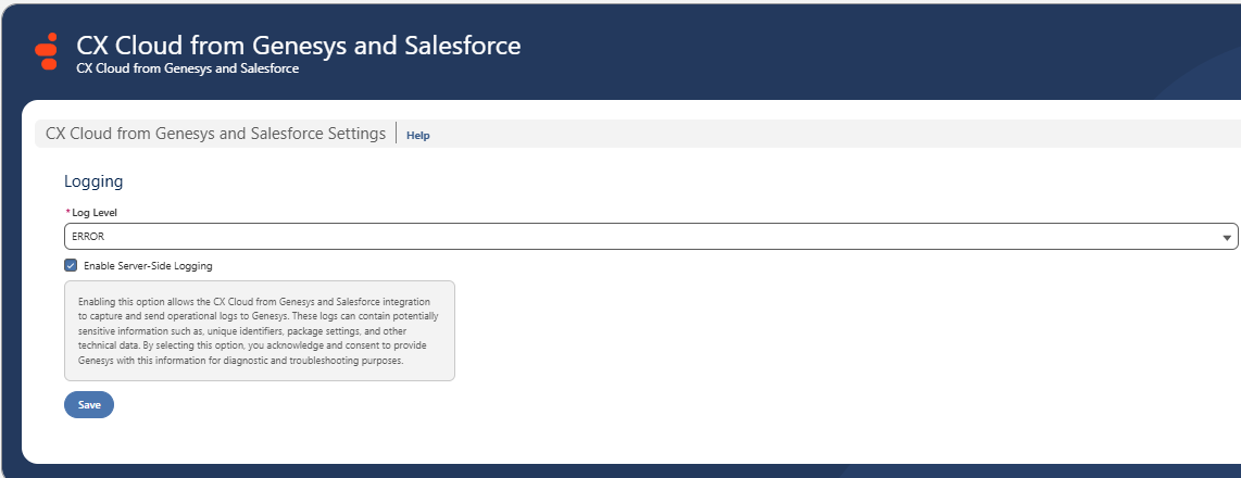 The integration can send logs to Genesys package, but you need to enable it in the CX Cloud Genesys Settings and the core package. The logs can be found in the Operational console in Genesys.