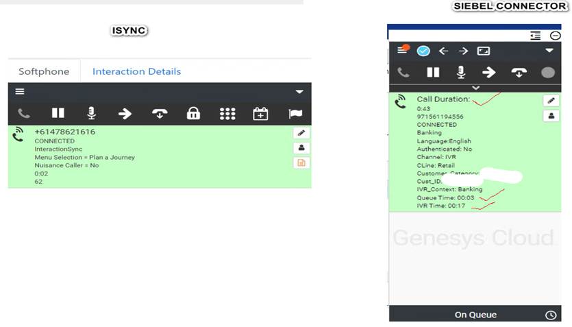 Yes, we have selected Queue Time and IVRTime to display in the interaction panel, in the order of Queue Time followed by IVRTime.