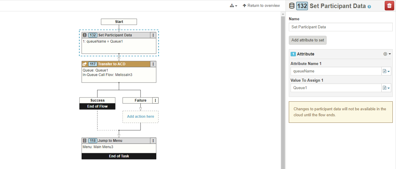 We try to put "set participant data" in Architect for an inbound call-flow in order to calculate the number of received calls by a specific queue