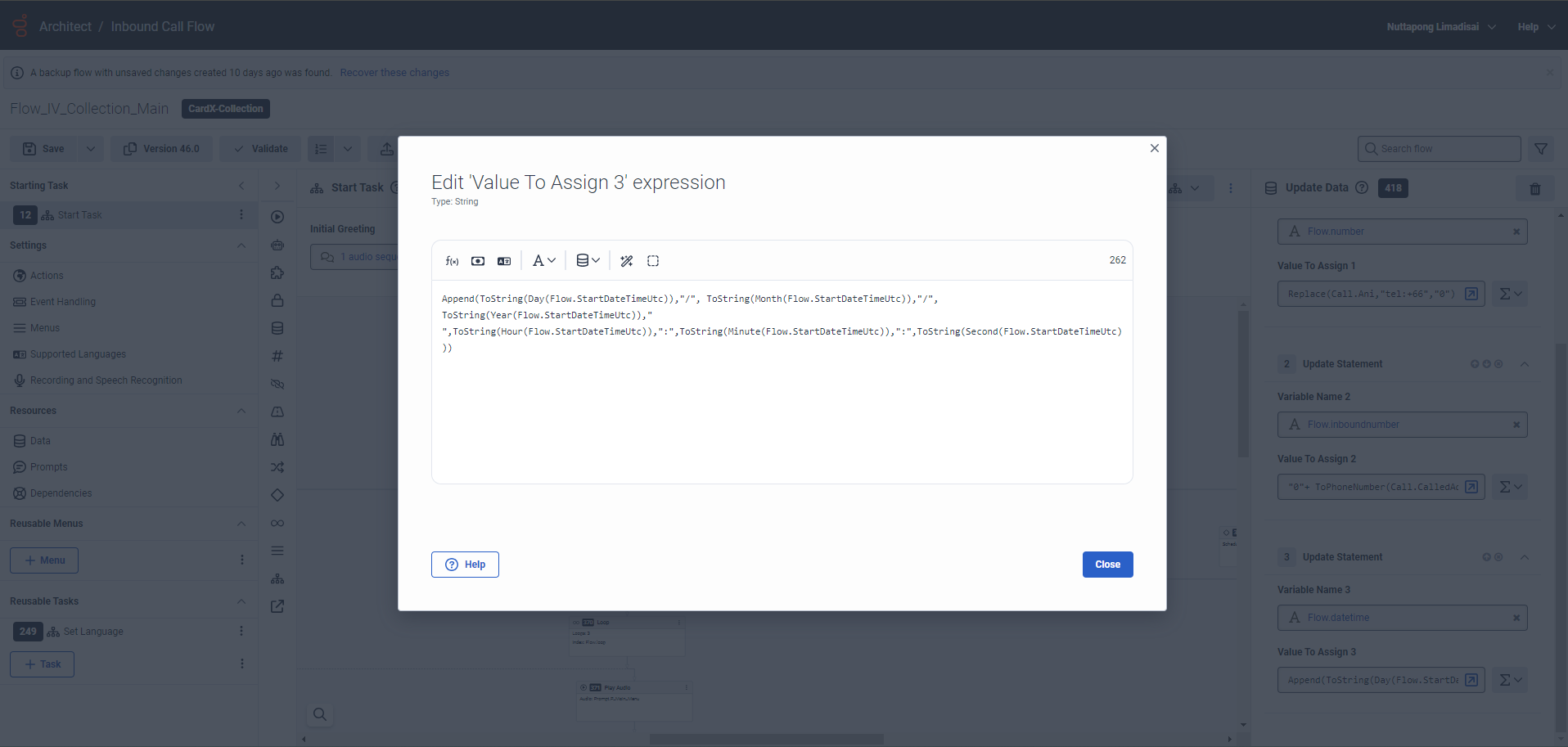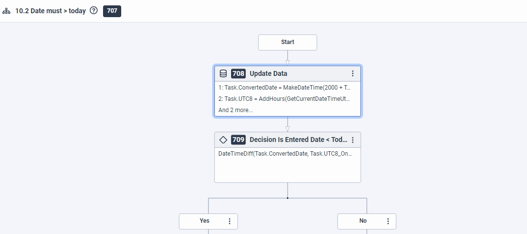- Task.ConvertedDate (Type: DateTime) - to convert the date into YYYYMMDD that I want because the caller input from another system which only has ddmmyy