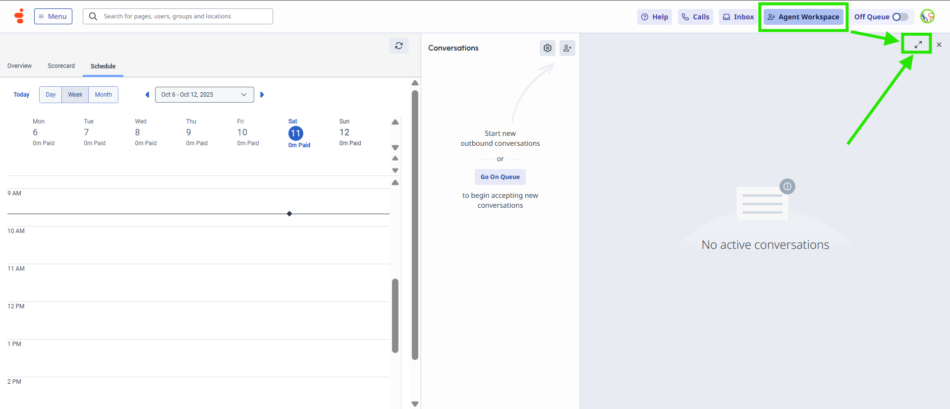 • I've found when I flip the order I do those in (e.g. if I open the Agent Workspace first and then try to navigate to my schedule), I have to reopen the Agent Workspace again. That said, that behavior happens regardless of what view I choose, so I'm used to it.