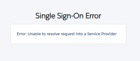 We are configuring Single Sign-On (SSO) between Genesys Cloud Embeddable framework (Service Provider) and Salesforce (Identity Provider). While testing the login flow, we are encountering the following error: