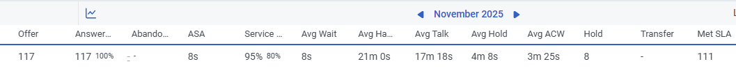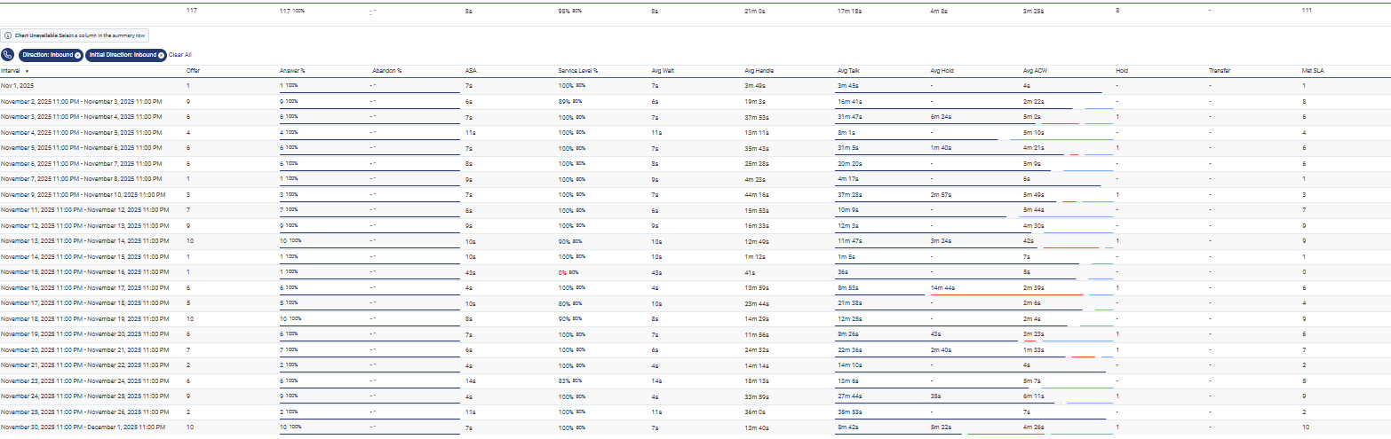I've found a discrepancy in the summary row. As you can see in the snapshot, the total shows 117 offered, but when you add the day-wise totals, it comes to 127. This might be happening because the system is taking the default time range as 11 PM to 11 PM instead of 12 AM to 12 AM.