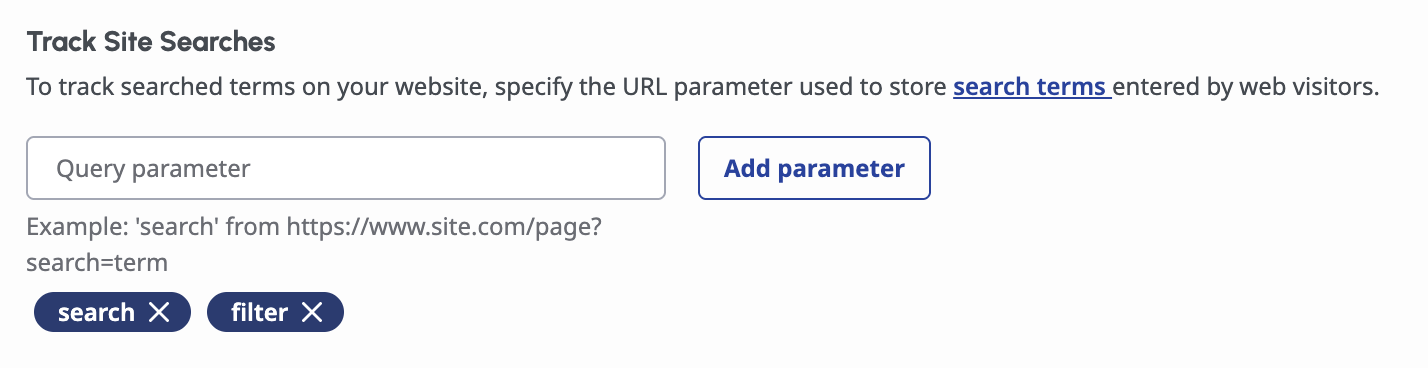 Some websites store user search terms in query parameters (e.g., ?q=pricing). By registering these parameters in Messenger, search activity is properly recorded as a Search event rather than a navigation entry.