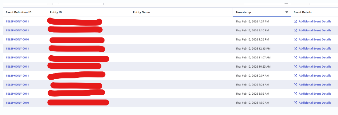 We are a FedRAMP customer and starting last week (09/25/25 to be exact) our Edges (vendor managed) were updated to version 1.0.0.26833 after midnight on 09/25. Starting at around 6:20AM EST, we began receiving Telephony-0010 and Telephony-0011 events for the very first time (we've been on the platform for around 18 months and cannot recall receiving these two specific events until 09/25). We also have a trigger setup to email us when operational events occur. We cannot find an email for previous 6 months of these events occurring.