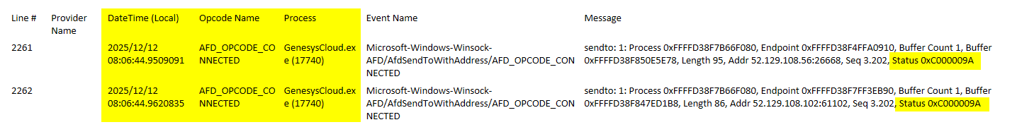 Yes, I reported an increase in these 2 events on 10th September. Genesys investigated and have currently determined the issue is on our side, so the incident is with our network team for investigation.