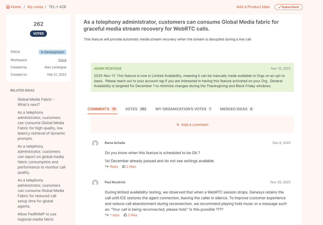 However, I'm wondering why we've seen an increase in client reports of dropped calls since that update. While the error may not have been visible to agents previously, any dropped calls that occurred have always been reported by the client."